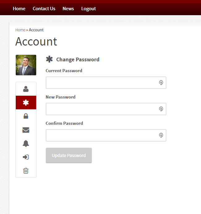 Then click on the “*” symbol to change your password. Enter your old password and new password and click “Update Password” to save the changes.