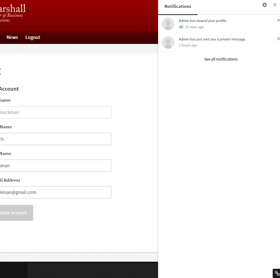 You can send private direct messages to any other user on the system by clicking on the message button found in the directory pages or the individual user’s profile. An email will be sent to the user notifying them that they received a message.